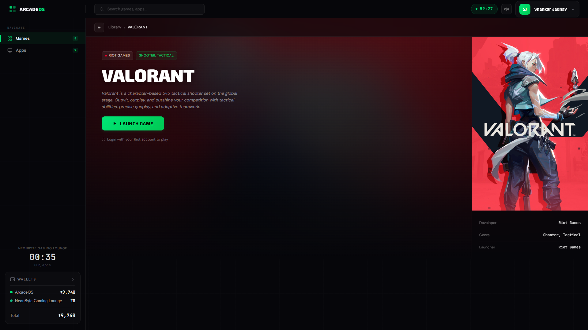 Runs live at Pune's flagship gaming café (Ministry of Esports) and four other top cafés — billing sessions by the second, pricing PCs dynamically, running tournaments, and handling cafeteria orders across PC, web, and mobile. One platform, three surfaces, synced in real time.